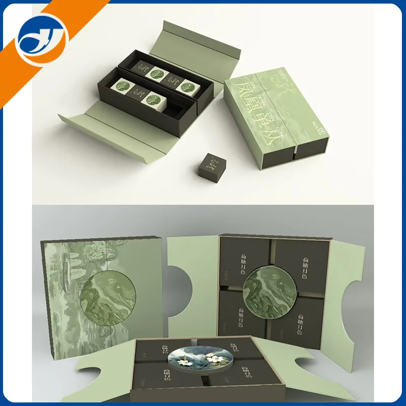 புறணி மற்றும் உள் ஆதரவு: 1500 கிராம் அட்டை உள் பெட்டி பரிசுகளை உறுதியாக பாதுகாக்கிறது, ஈ.வி.ஏ/கடற்பாசி உள் ஆதரவு போக்குவரத்து பாதுகாப்பை உறுதிப்படுத்த உடையக்கூடிய பொருட்களை (மூன் கேக்குகள், தேயிலை செட் போன்றவை) சரிசெய்கிறது.