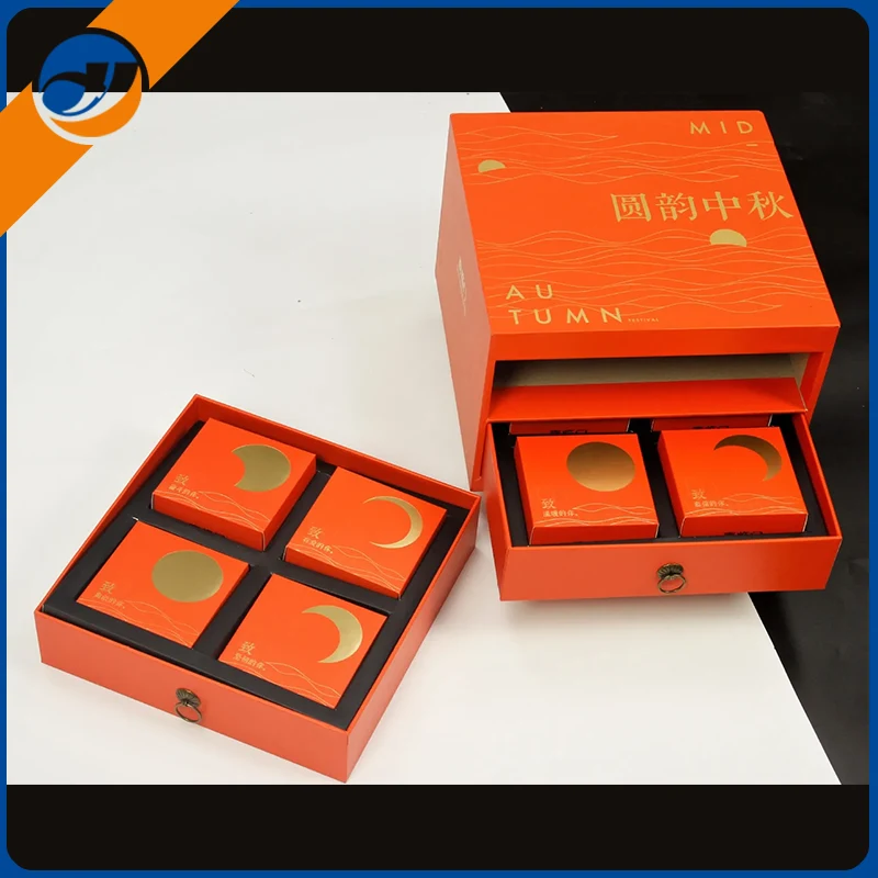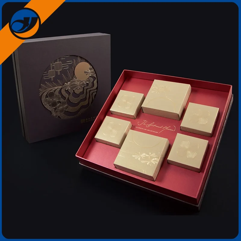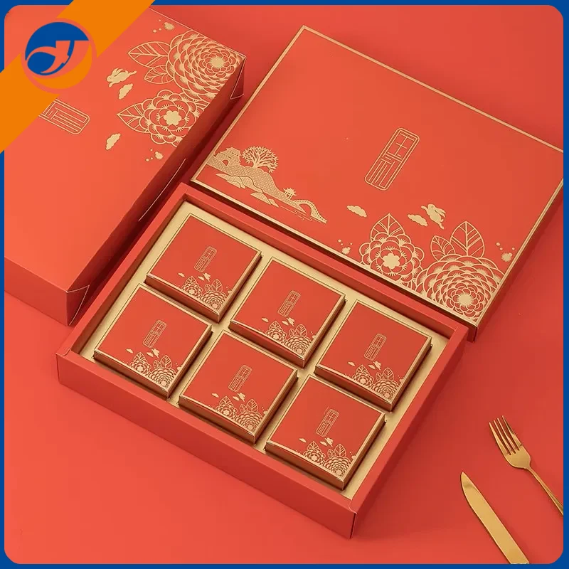மூன்கேக் பெட்டிகள்சுற்றுச்சூழல் நட்பு அட்டைப் பெட்டியால் ஆனது, கடினமான அமைப்பு மற்றும் மென்மையான அச்சிடலுடன், சாங்'ஸ் சந்திரனுக்கு ஓடுவது மற்றும் ஜேட் முயல் துடிக்கும் மருந்து போன்ற பண்டைய படங்களை கோடிட்டுக் காட்டுகிறது, இது கலாச்சார கவர்ச்சியால் நிறைந்துள்ளது.மூன்கேக் பெட்டியின்தனித்துவமான அடுக்கு அல்லது பெட்டியின் வடிவமைப்பு எண்ணெய் நீராடுவதைத் தடுக்கவும், அவற்றை புதியதாக வைத்திருக்கவும் மூன்கேக்குகளின் வெவ்வேறு சுவைகளை அனுமதிக்கிறது, மீண்டும் இணைந்த தருணத்தில் காந்தி சேர்க்கிறது.